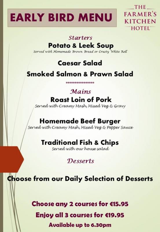 The Farmer's Kitchen is a 21-bedroom hotel with free parking, free wifi, Carvery Lunch from 12 midday and A la Carte Menu from 3pm daily. The Mezz or The Cilliana Function Room is an ideal venue for small & large parties for special occasions e.g Weddings, Birthdays, Christenings and celebrations. Walking distance from Bowling, Cinema, Meadows & Byrne and a short drive to Rosslare Europort, Johnstown Castle & Gardens, The National Heritage Park, Wexford Opera House, Hook Light House, The Dunbrody Famine Ship and many other attractions.
